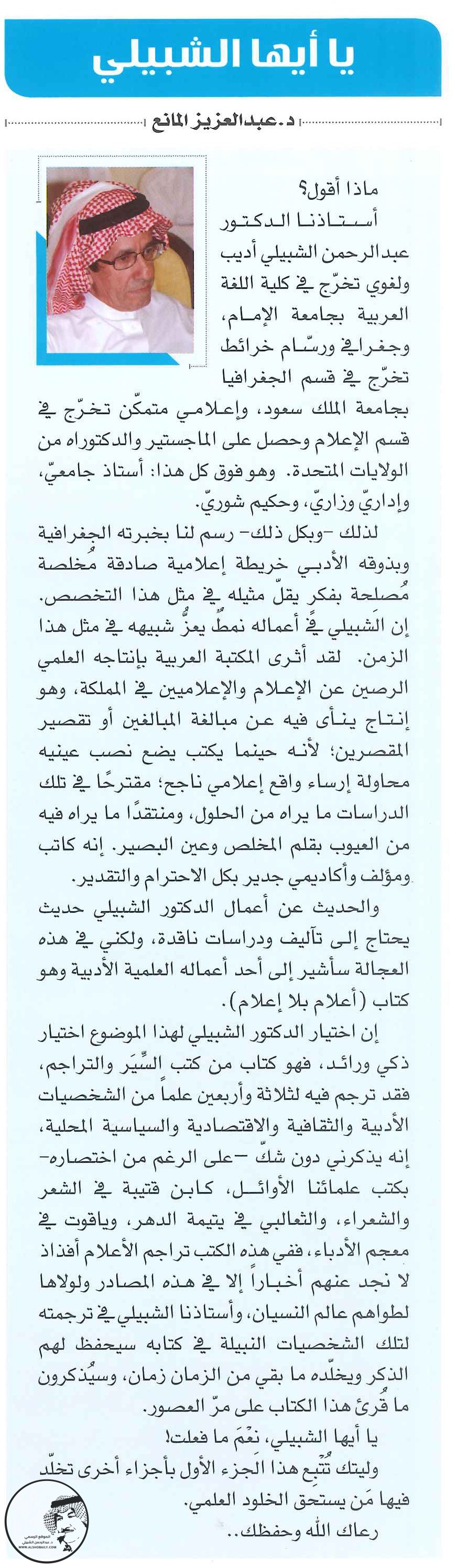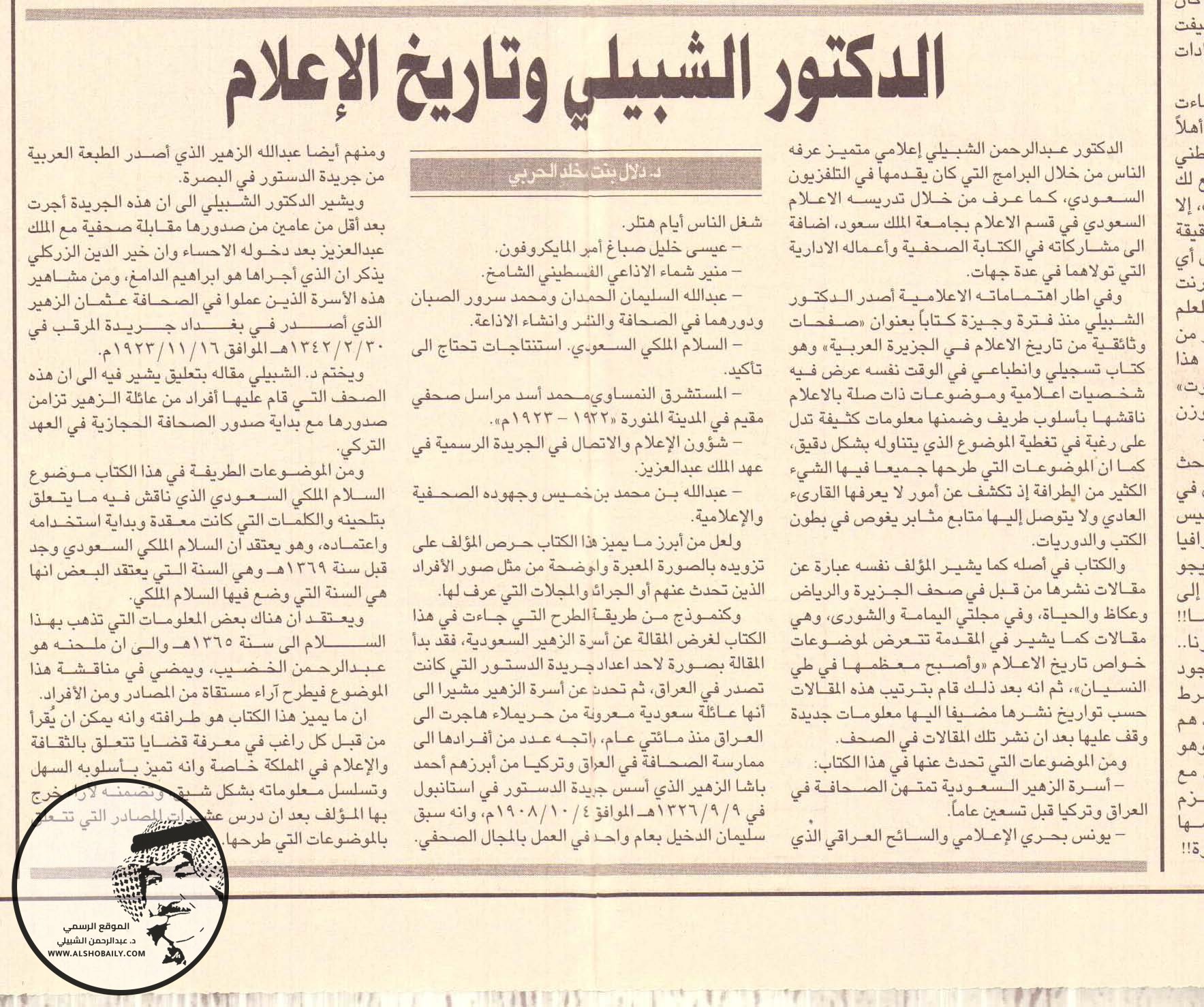 (العربية) لا يذكر الإعلام السعودي إلا ويذكر عبدالرحمن الشبيلي