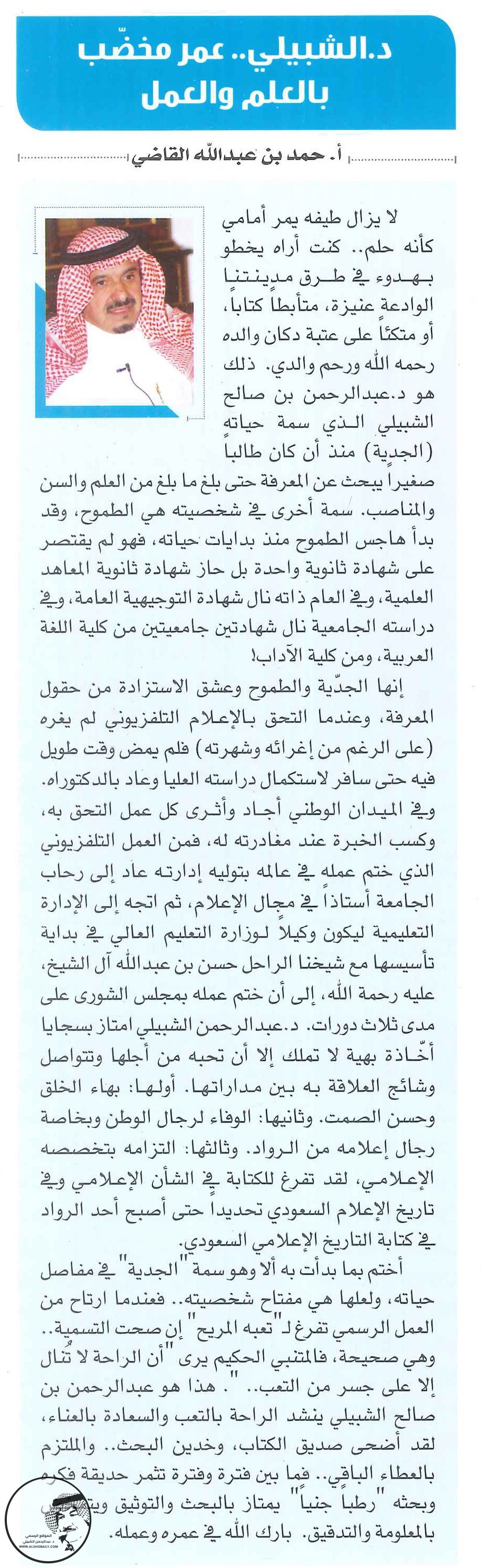 (العربية) د. الشبيلي .. عمر مخضب بالعلم والعمل