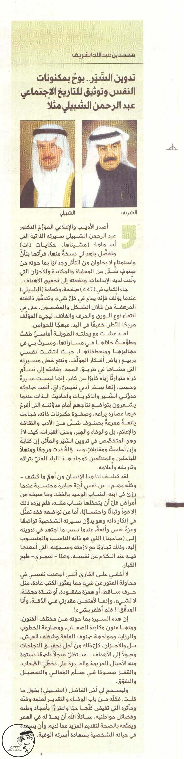 (العربية) تدوين السِّيَر.. بوحٌ بمكنونات النفس – عبد الرحمن الشبيلي مثلاً