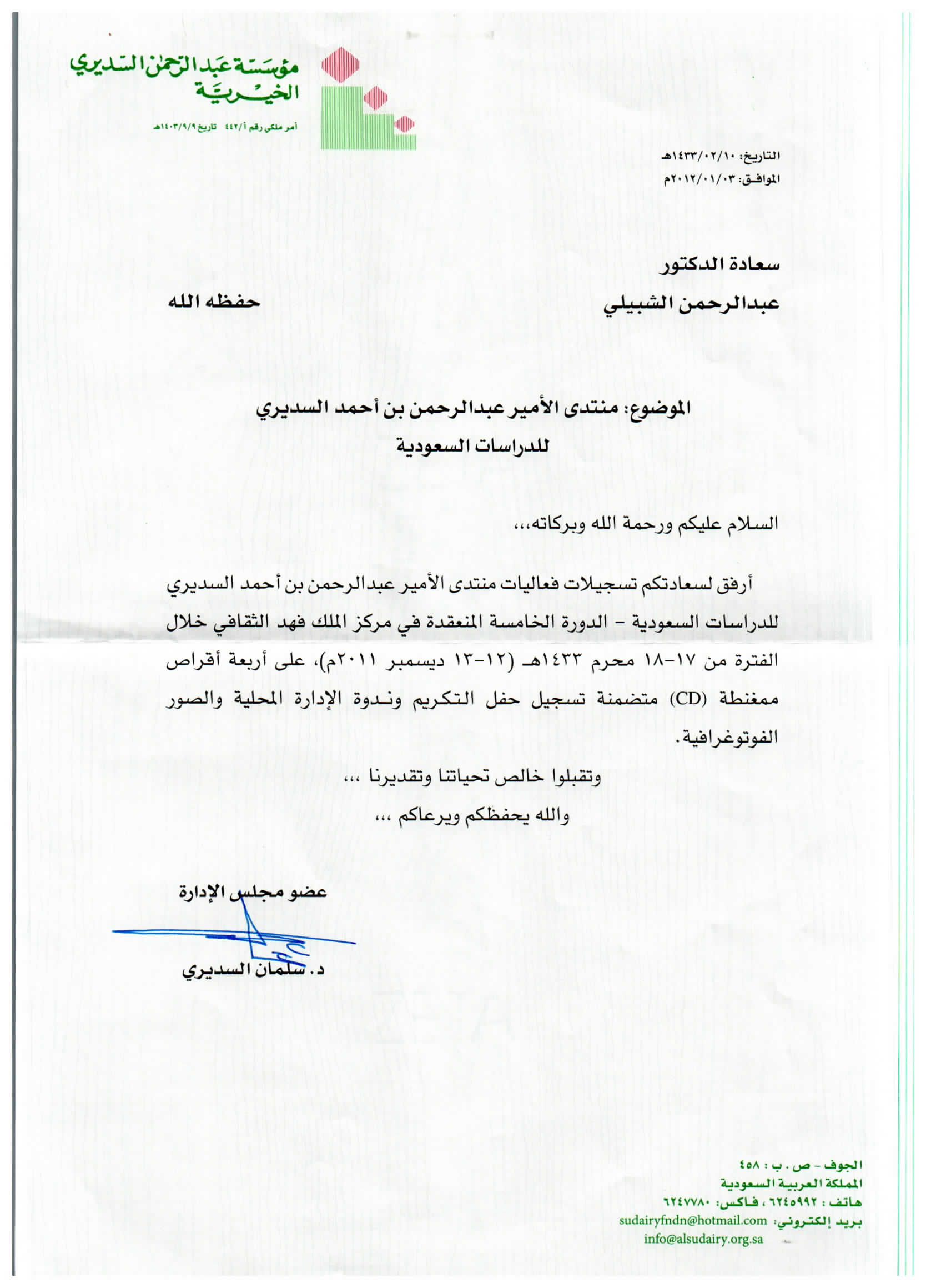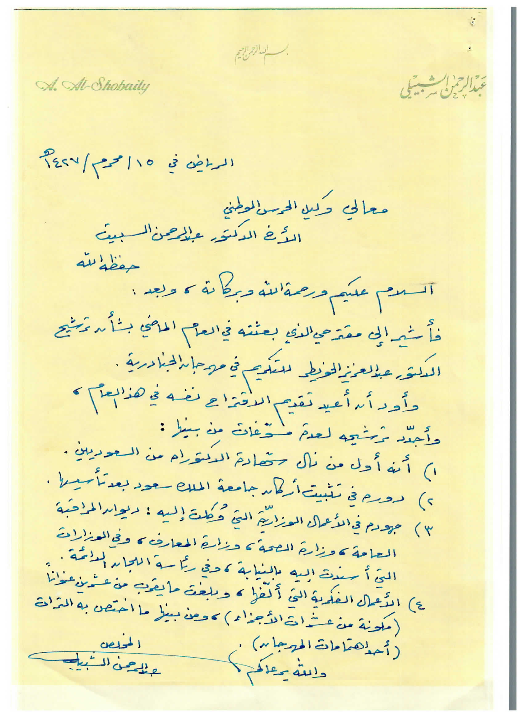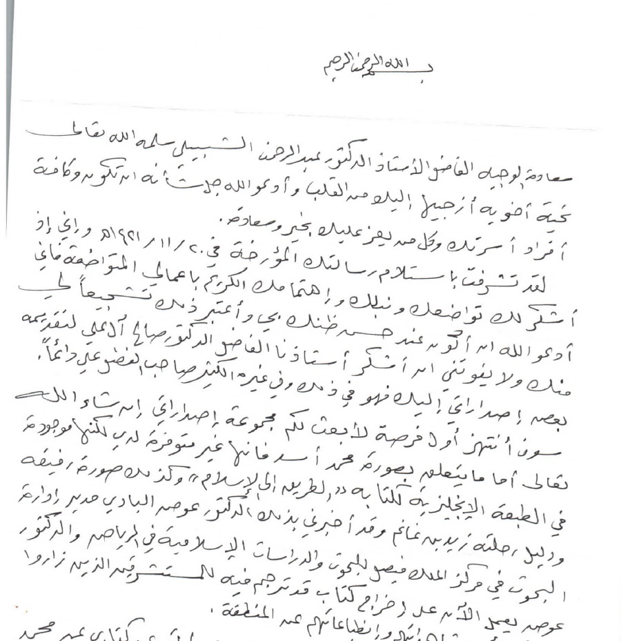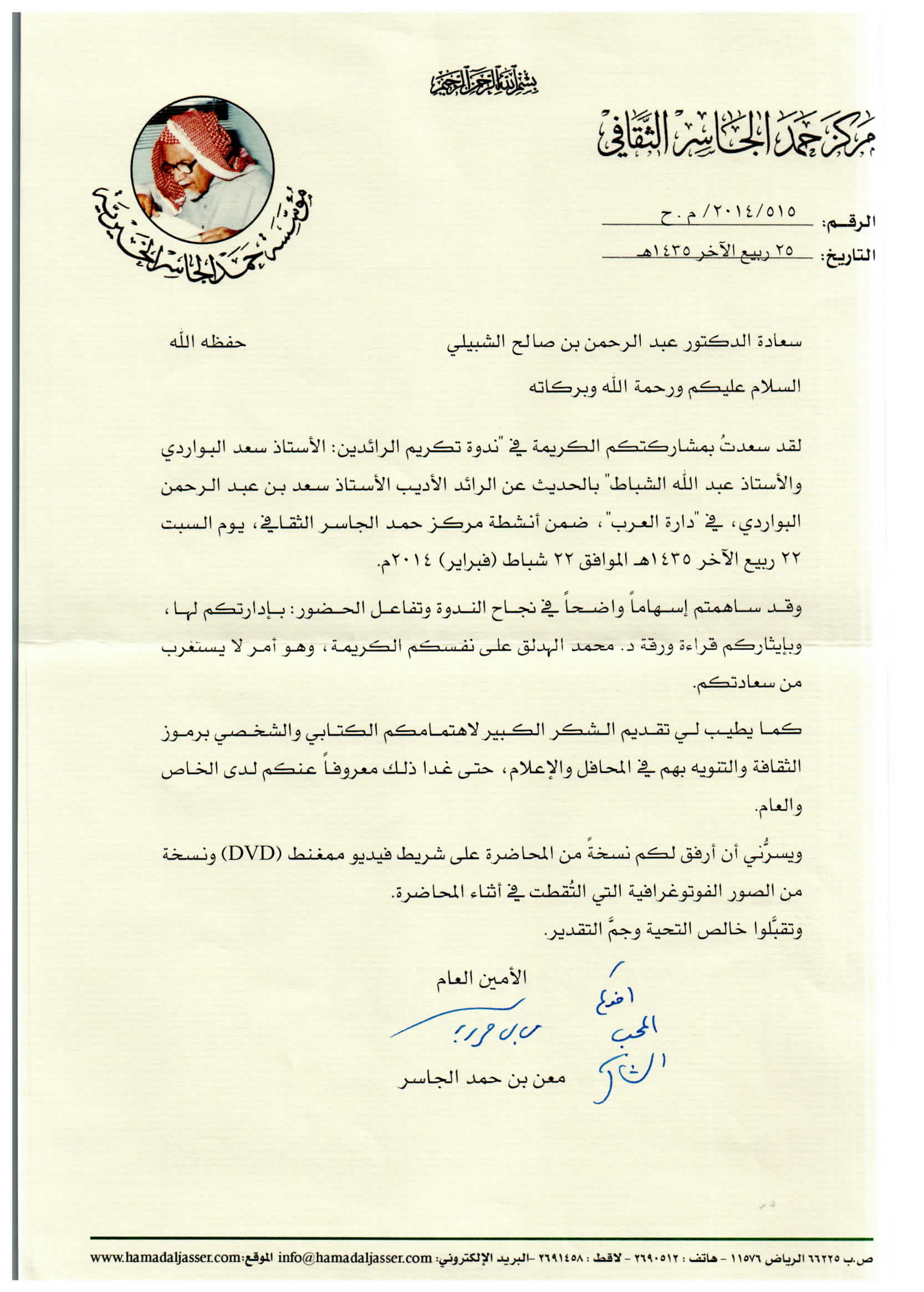 (العربية) خطاب للحرس الوطني بترشيخ الدكتور الخويطر للتكريم في الجنادرية