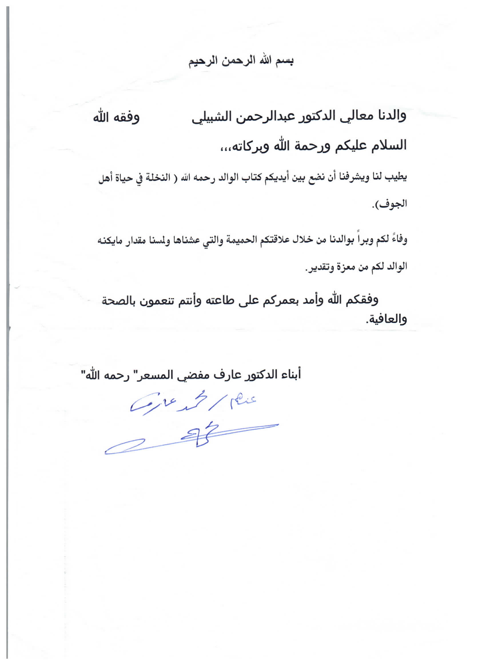 أبناء دكتور عارف مفضي المسعري